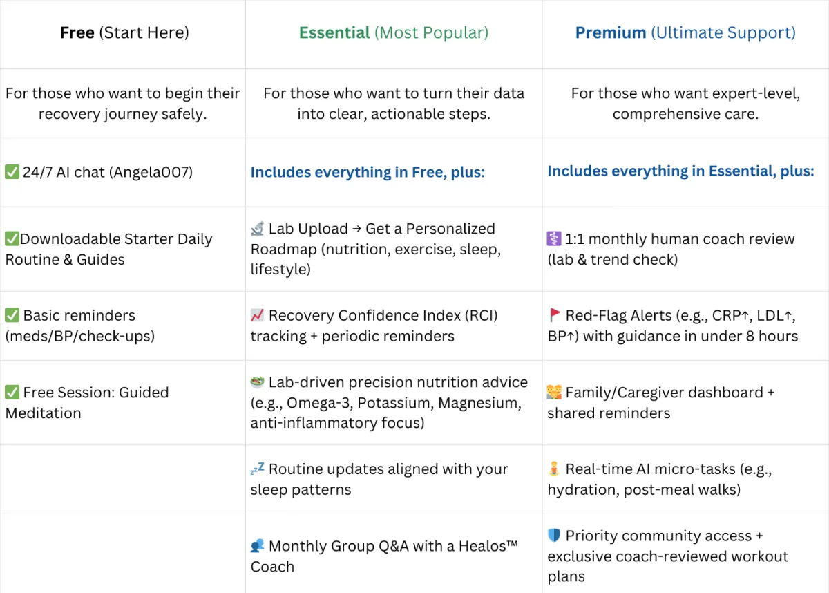 "I was overwhelmed by numbers and scattered advice. Upgrading to Essential finally gave my lab results meaning. Within 3 months, my doctor even noticed my improvements, and my Recovery Confidence Index (RCI) rose from 62 to 78!"